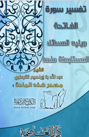 تفسير سورة الفاتحة ويليه المسائل المستنبطة منهاتفسير سورة الفاتحة ويليه المسائل المستنبطة منها: في هذه الرسالة تفسيرٌ لسورة الفاتحة، وبيان فضلها، واستخراج الفوائد والمسائل المُستنبطَة منها. دار العاصمة للنشر والتوزيع بالرياض - موقع الكتيبات الإسلامية http://www.ktibat.com | عبد الله بن إبراهيم القرعاوي |