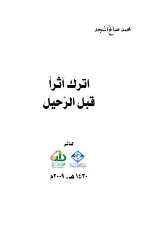 اترك أثرًا قبل الرحيلاترك أثرًا قبل الرحيل: قال المؤلف - حفظه الله -: «فإن من أعظم الأعمال أجرًا، وأكثرها مرضاةً لله - عز وجل -، تلك التي يتعدَّى نفعُها إلى الآخرين؛ وذلك لأن نفعها وأجرها وثوابها لا يقتصر على العامل وحده؛ بل يمتد إلى غيره من الناس، حتى الحيوان، فيكون النفع عامًّا للجميع. ومن أعظم الأعمال الصالحة نفعًا؛ تلك التي يأتيك أجرها وأنت في قبرك ... | محمد صالح المنجد |