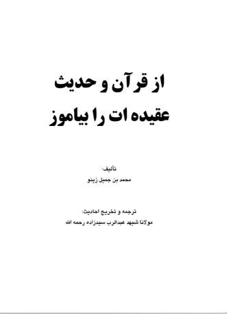 خذ عقيدتك من الكتاب والسنة ( فارسي )كتيب يحتوي على أسئلة مهمة في العقيدة، أجاب عنها المصنف مع ذكر الدليل من القرآن والسنة؛ ليطمئن القارئ إلى صحة الجواب؛ لأن عقيدة التوحيد هي أساس سعادة الإنسان في الدنيا والآخرة. سایت عقیده http://www.aqeedeh.com از قرآن و حدیث عقیده ات را بیاموز دراين رساله كوتاه ومختصر كه پيش نظرداريددريائي از معارف وعقايداسلامي جمع گرديده است كه مسائل مهم و اساسي اسلامي به عبارتي سهل به صورت پرسش و پاسخ مطرح گرديده است | محمد جميل زينو |