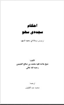 رسالة في سجود السهو ( فارسي )سجود السهو: قال المؤلف - رحمه الله - «فإن كثيرًا من الناس يجهلون كثيرًا من أحكام سجود السهو في الصلاة, فمنهم من يترك سجود السهو في محل وجوبه، ومنهم من يسجد في غير محله، ومنهم من يجعل سجود السهو قبل السلام وإن كان موضعه بعده، ومنهم من يسجد بعد السلام وإن كان موضعه قبله؛ لذا كانت معرفة أحكامه مهمة جدًّا لا سيما للأئمة الذين يقتدي ... سایت عقیده http://www.aqeedeh.com احکام سجدۀ سهو کتابچهای که پیش رو دارید ترجمه فارسی «رسالة في سجود السهو» نوشتهی؛ شیخ علامه محمد بن صالح العثیمین رحمه الله تعالی - از بزرگترین فقهای معاصر - میباشد. البته علاوه بر ترجمهی رسالهی ایشان، برای آنکه مطالب مربوط به مسئلهی سجدهی سهو در نماز را برای خوانندگان گرامی کاملتر آورده باشیم اضافاتی را در انتهای این کتاب به اصل ترجمهی رساله ملحق نمودیم، که این اضافات نیز تماما از منابع معتبر فقهی از جمله دیگر آثار مولف می باشند. همچنین در انتهای ترجمه رسالهی مولف، آنرا به صورت اختصار درآوردیم تا مطالب آن دسته بندی شده و باعث شود ماندگاری مطالب آن در ذهن آسانتر گردند. یادآور می شویم که تمامی پاورقیهای این کتاب متعلق به مترجم میباشد، زیرا گاها احساس می شد تا جهت گویا تر کردن مطلب توضیحاتی ارائه شود و یا نیاز بود تا احادیثی را که مطلب را توجیه میکند ذکر شود. اما از جمله ویژگیهای مثبت این رساله و کتابچه اینست که قصد یاری هیچکدام از مذاهب فقهی را نداشته، بلکه در پی نصرت مدلول کتاب و سنت بر مذهب و تعصب مذهبی است. بعبارتی مطالب این رساله بدون تعصب نسبت به مذهب خاصی از مذاهب رایج، و با استناد به کتاب و سنت صحیح نبوی قصد دارد تا رای صواب را بیابد | محمد صالح العثیمین |