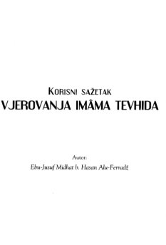 المختصر المفيد في عقائد أئمة التوحيد ( بوسني )بين المؤلف في هذا الكتاب عقيدة أهل السنة والجماعة. Vjerovanja imama tewhida Još jedna od odličnih knjiga koje pojašnjavaju akidu ehli sunneta vel džemata. | |