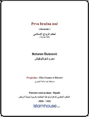 ليلة الزفاف ( بوسني )كتيب صغير تطرق مؤلفه إلى أهم مسائل يحتاجها الزوج وزوجة في حياتهما الجديدة. Prva bračna noć Mala knjižica u kojoj su sakupljeni propisi koji se tiču mladenaca u njihovim prvim danima bračnog života, kao i dalje u budućnosti. | Muharem Štulanović |