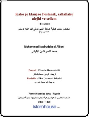 كيفية صلاة النبي صلى الله عليه وسلم ( بوسني )كتاب صغير يبين كيفية صلاة النبي صلى الله عليه وسلم مع عناية بالدليل والمؤلف رحمه الله يأخذ بيد القارئ ويبين له الصلاة خطوة خطوة. Skraćena verzija knjige Kako je klanjao Allahov Poslanik Mala knjižica koja pojašnjava propise namaza i njegova svojstva, upravo onako kako je klanjao Allahov Poslanik sallallahu alejhi ve sellem. | Muhamed Nasirudin el Albani |