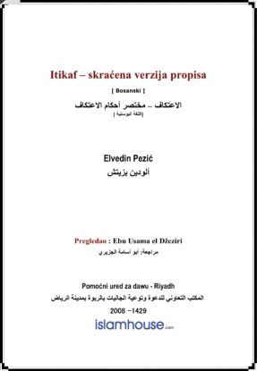 أحكام الاعتكاف ( بوسني )بين المؤلف أحكام الاعتكاف وكيف يكون وطريق الاستغلال الوقت عموما في هذا الشهر وخاصة . Itikaf Pojasnio je pisac propise itikafa te kako se obavlja i način iskorištavanja vremena na najbolji način inače a posebno u mjesecu Ramazanu. | Elvedin Pezić |
